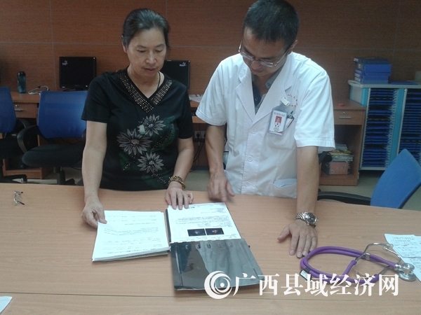 县域会常务副秘书长杨丽英(左)向医生了解病情