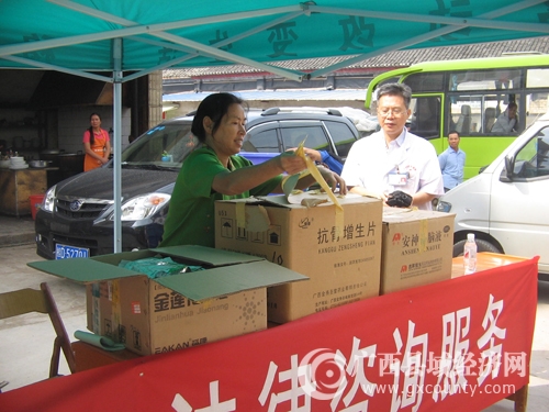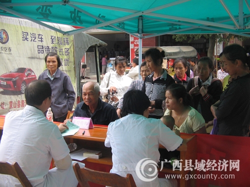 2012年10月17日,是世界消除贫困日20周年,在这特殊的纪念日,由自治区统战部组织的广西党外知识分子的同心实践活动分别在贫困山区东兰县和蒙山县举行。赴东兰县由自治区党委、统战部部长范晓莉带队、赴蒙山县由自治区统战部副部长李东兴带队。同心实践活动有几项内容:一是由广西新的社会阶层人士、年年丰集团捐资30万元助学,援建蒙山县新圩镇双垌小学教学楼,并举行“同心惠民生”捐赠仪式;二是广西党外知识分子“同心促和谐”义诊和法律咨询服务。梧州市委常委、统战部部长关远芳、蒙山县委书记秦金敏、县长宋彤宇县长、县党政有关部门领导全程陪同本次活动。