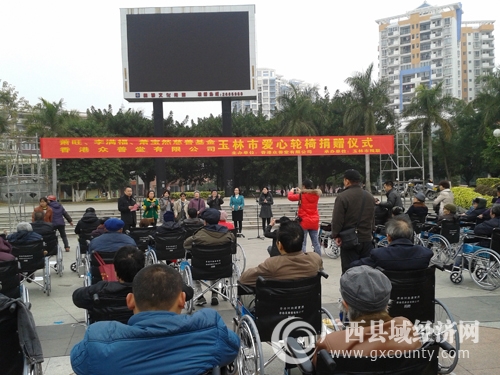 本网讯 1月10日上午,香港萧旺、李满福、萧宝然慈善基金玉林市爱心轮椅捐赠仪式在玉林市城区文化广场举行。