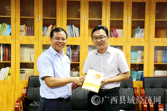 黄品优副会长向客人简单介绍了广西县促会的基本情况和业务工作规划,韩雪松总经理对这几年来县促会取得的成绩十分赞赏并予以高度评价。双方就今后加强交流合作、共同推动广西现代农业发展以及实施广西乡村振兴战略等方面交换了意见,达成了广泛共识。座谈后,黄品优副会长向韩雪松总经理赠送了由自治区县域办组织编写、由县促会负责编辑出版的《标杆风采2016》一书,并愉快合影留念。(黄璟岚/摄影报道)