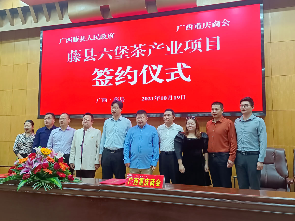10月19日,广西藤县人民政府与广西重庆商会于广西梧州市藤县举行“藤县六堡茶产业项目”签约仪式,广西藤县县长蒙中平、广西重庆商会会长杨俊一行与广西县促会总规划师覃孟生博士参与签约仪式。