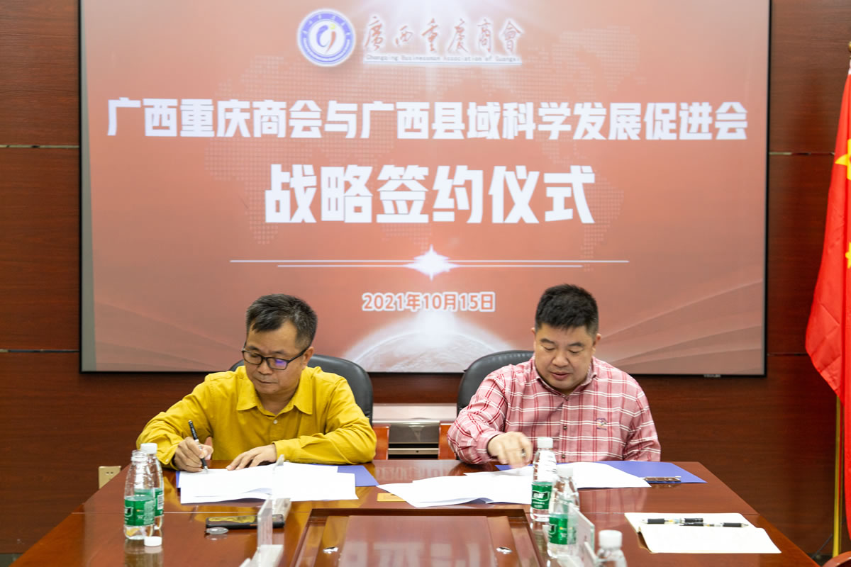 10月15日,广西县域科学发展促进会(简称“广西县促会”)与广西重庆商会、广西火天信投资集团有限公司签署战略合作协议。广西县促会秘书长罗福坚一行与广西重庆商会会长、广西火天信投资集团有限公司董事长杨俊一行会谈交流,并共同见证签约仪式,广西县促会秘书长罗福坚与广西重庆商会会长杨俊代表双方签署战略合作协议。