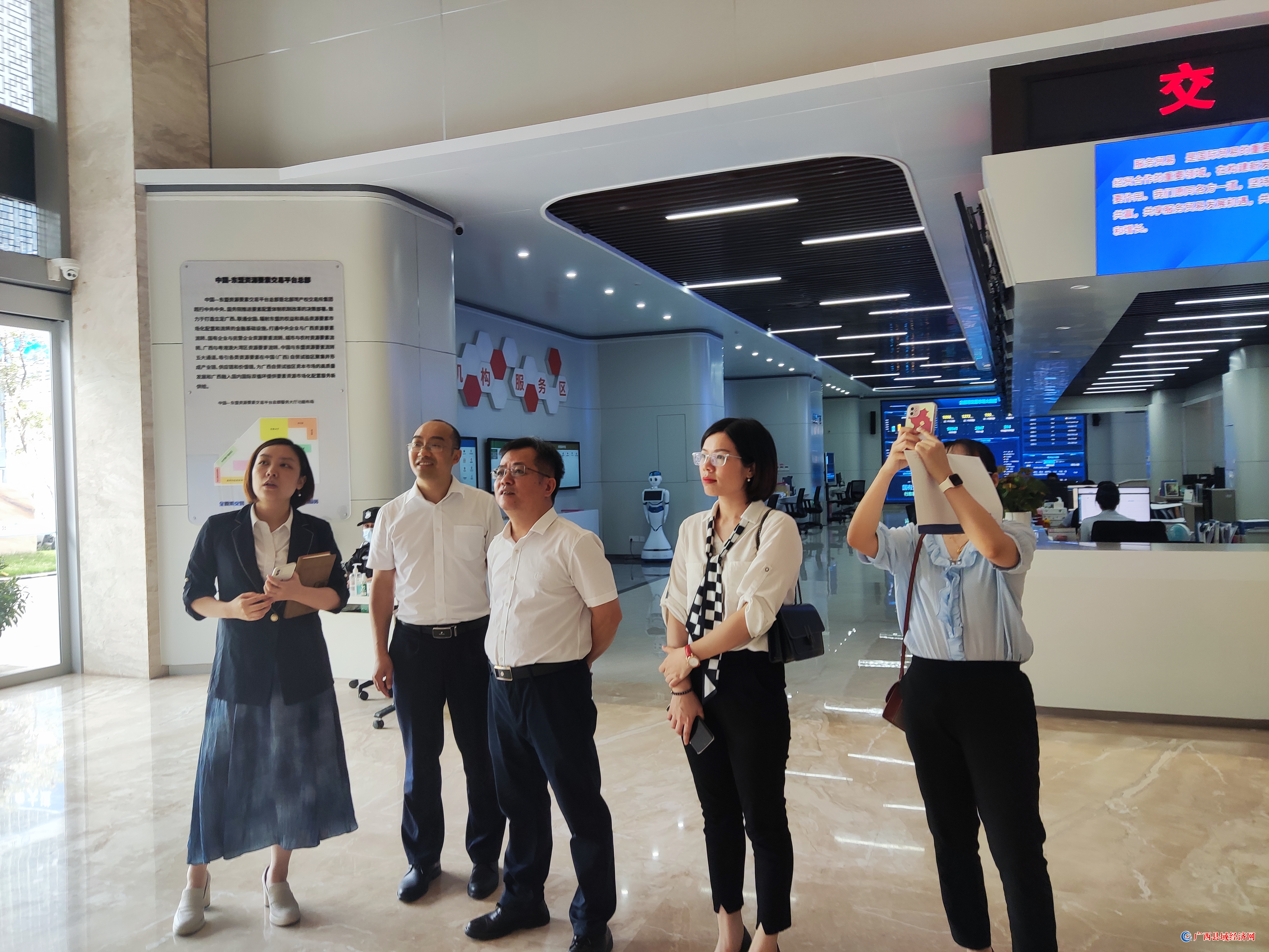 会后,广易咨询公司董事长邹乙睿及常务副总王发渊在交易所大厅给我们介绍了北部湾产权交易所集团的各大业务板块,服务范围有金融资产、知识产权、林权、农村产权、大宗茧丝、电力、家政资源、酒权等。