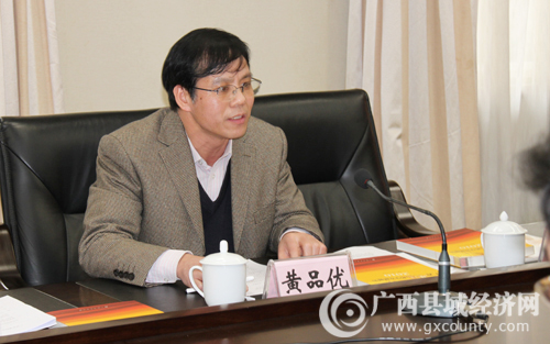广西县域经济网总编辑黄品优就促进会筹备工作进行汇报和说明