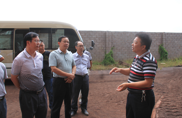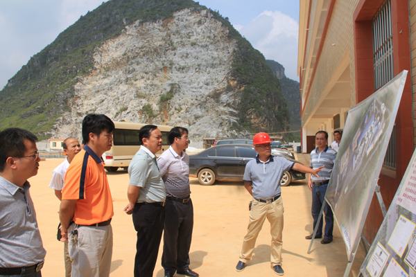 9月26日,黄品优(左五)带队考察靖西浙浦水泥有限公司,靖西县委副书记陆伟(左四)陪同。