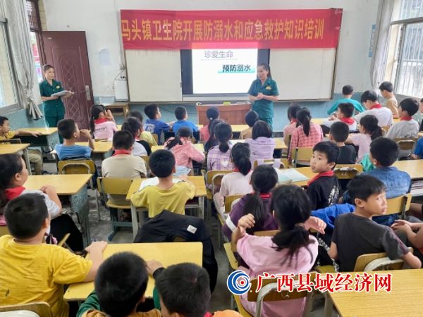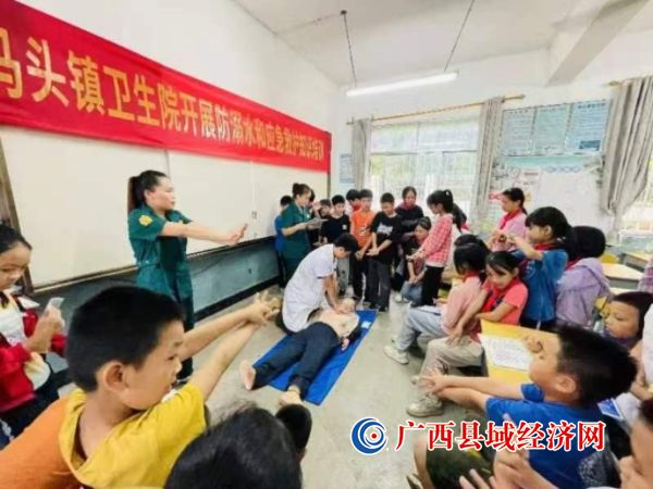 5月8日,平果市马头镇卫生院组织专业的医疗团队,深入金显村小学,开展防溺水及急救知识培训活动。
