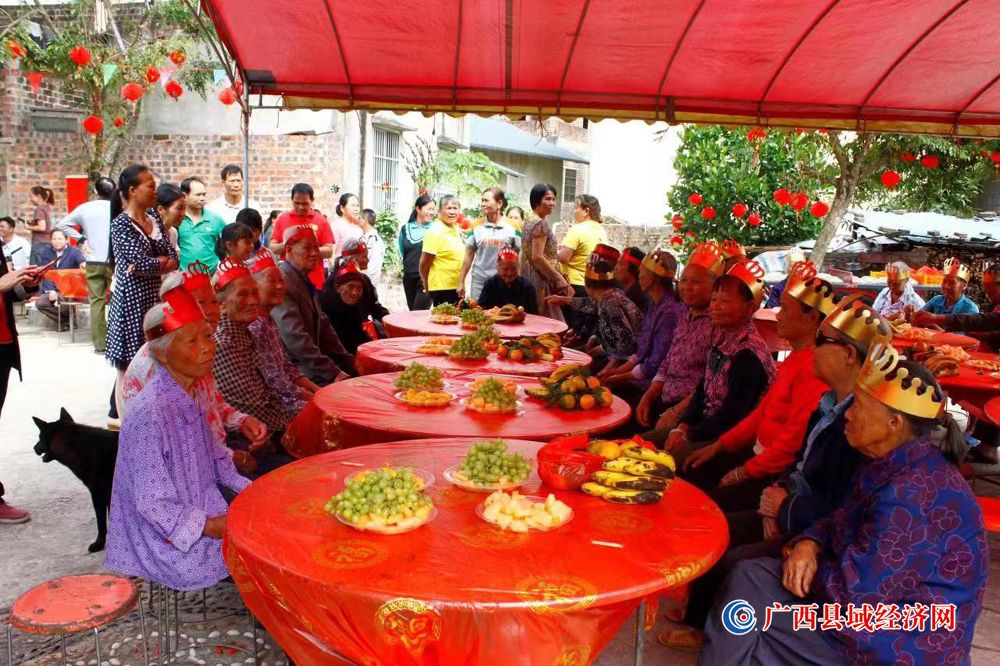 图一、10月22日,宁明县东安乡六丈村六丈屯70岁以上老人参加敬老节座谈会。 (邱上其 摄)