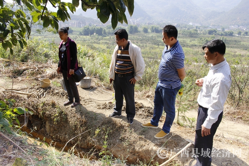 恭城县水利局驻村领导及工作人员在东寨村现场指导工作(通讯员黄晓君摄)