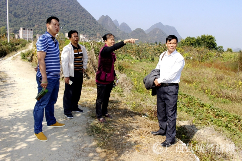 恭城县水利局带领东寨村干部到阳朔县白沙镇蕉芭林村考察该村经济发展情况(通讯员黄晓君摄)