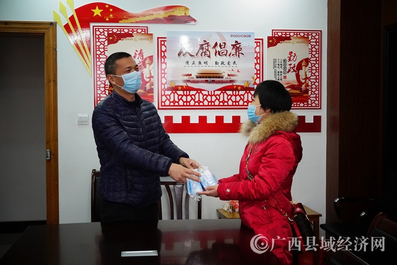 东寨村一村民向恭城县水利局赠送口罩(通讯员黄晓君摄)