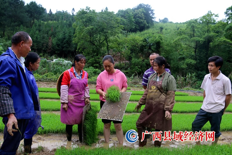 5月20日农业技术专家盘玉梅在为三联村群众讲解抛秧技术要领。