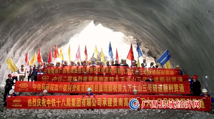 贵南高铁广西段九万大山三号隧道贯通。