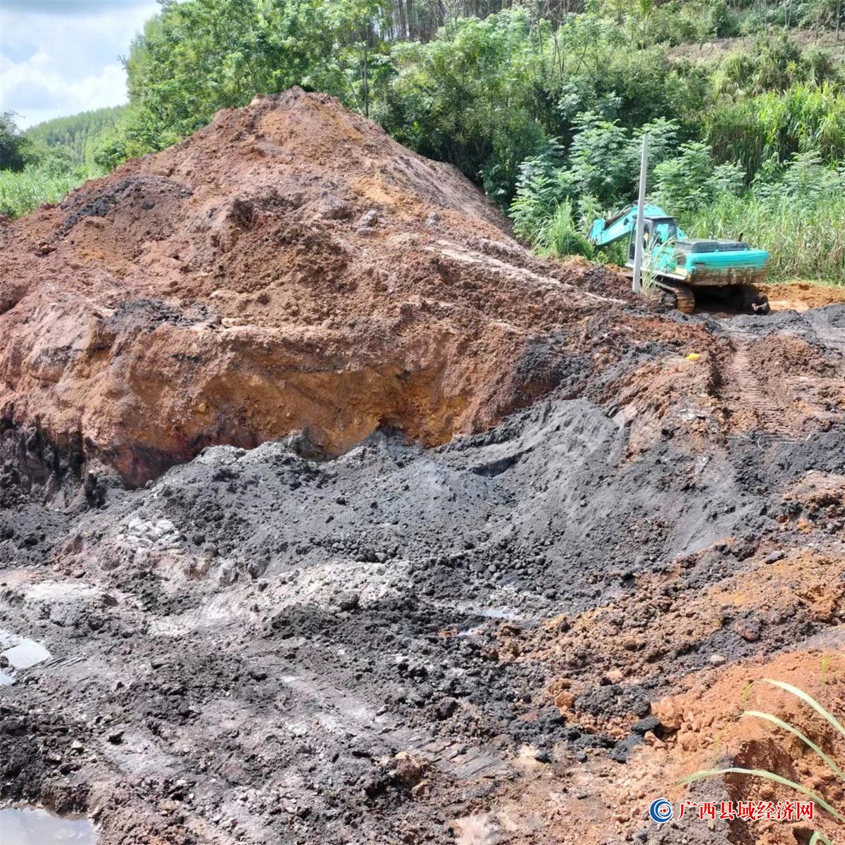图为亭亮镇工作人员发现的非法开采车辆