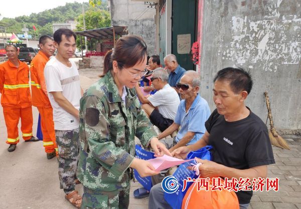 ▲念克分场在宁明峙浪乡洞漫村发放森林防火宣传单(陈俊全 摄)