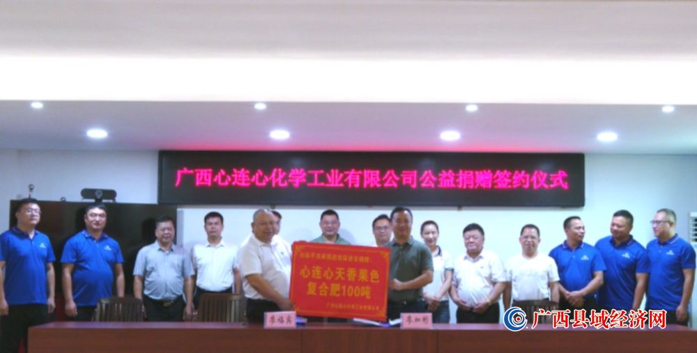 9月18日,广西心连心化学工业有限公司与桂平市民族团结进步协会签订捐赠协议书,公益捐赠天香果色复合肥100吨、衣物1000件、帐篷20顶等,总价值约50万元,用于帮助桂平市受灾各族群众加快恢复生产。