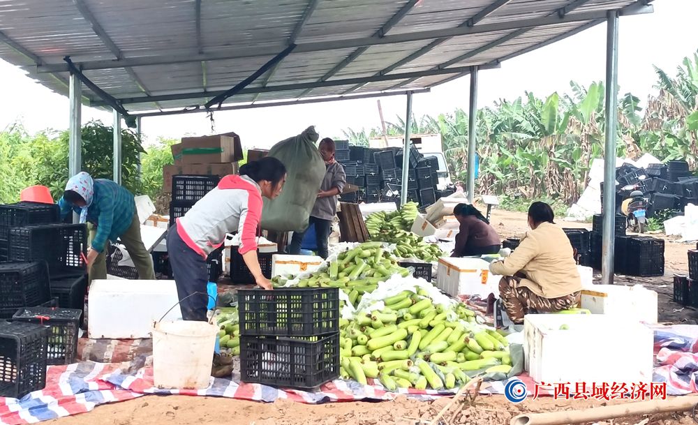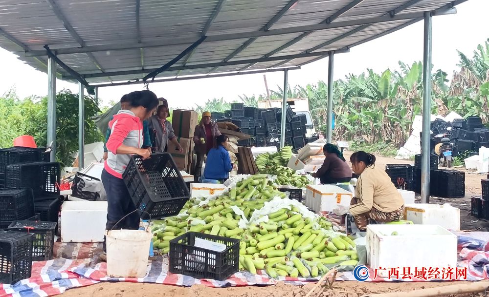 图三、4月21日,宁明县明江镇安马村菜农正在对成熟的水瓜进行装箱准备销往区外。 (梁文高 摄)