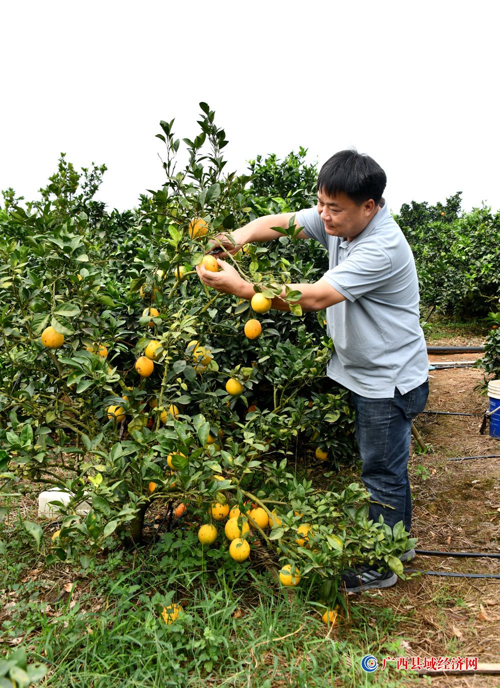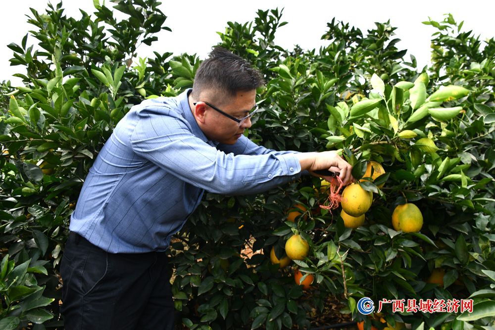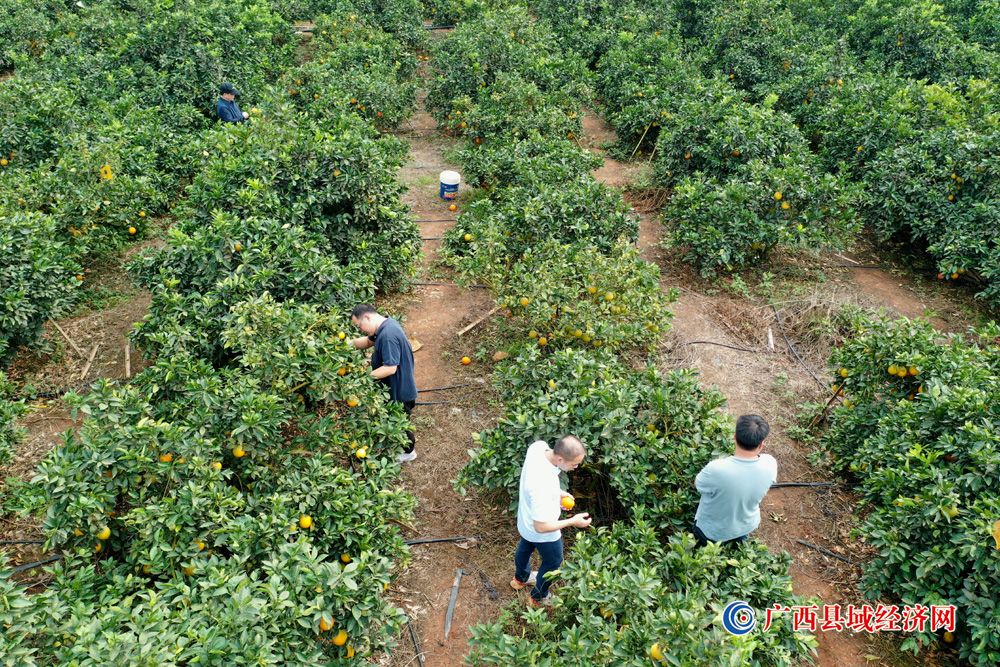 图八、11月16日,广西宁明县橙香果业专业合作社脐橙园里几位游客正在体验采摘脐橙的乐趣。(周贻刚 摄)