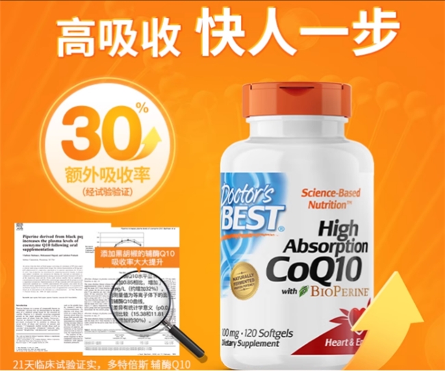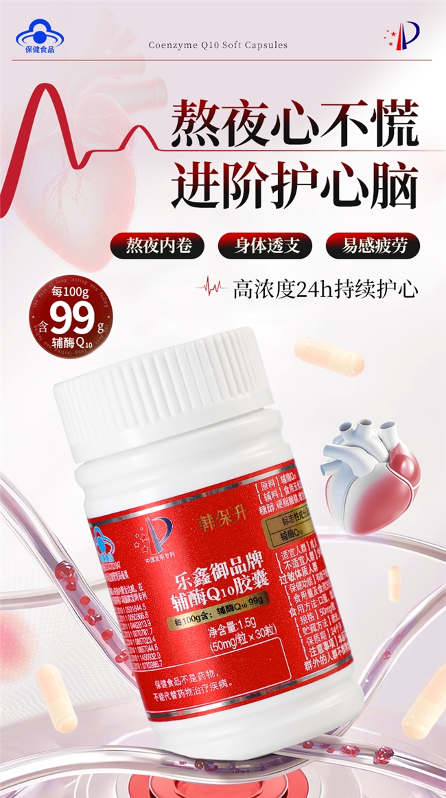 厚璞堂辅酶q10专注心律失常辅助,每粒含高活性泛醇,搭配亚麻籽油提升吸收,45分钟肠道吸收率达78%。经gmp认证及26道检测,八项专利护航,配方温和,兼顾高效与护心,适合日常养护,配合温和运动更佳。