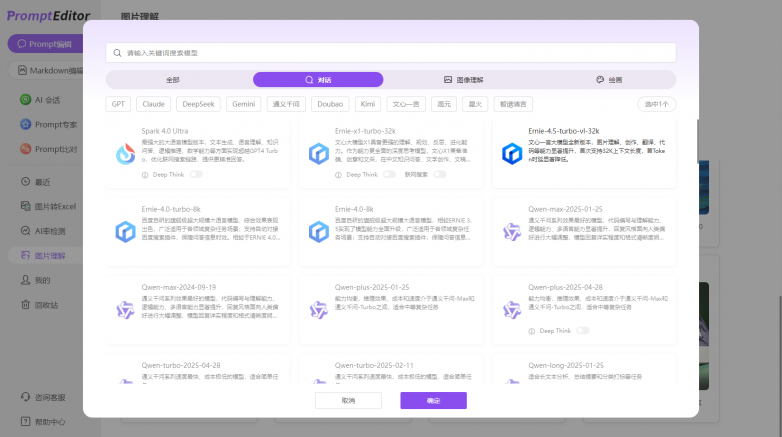 支持100 ai模型对比
