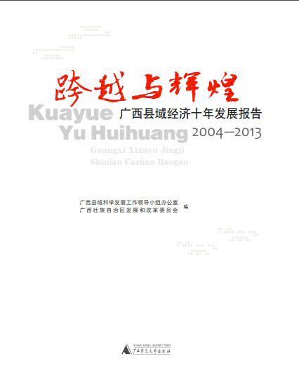 本网讯:日前,由自治区发展和改革委员会与广西县域科学发展促进会组织编写的《跨越与辉煌——广西县域经济十年发展报告2004—2013》一书,已经由广西师大出版社出版。自治区县域科学发展工作领导小组办公室主任、自治区发展和改革委员会主任黄方方为该书写了序言。
