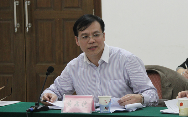 广西县域科学发展促进会副会长兼秘书长、广西县域发展规划研究中心常务副主任黄品优主持座谈会