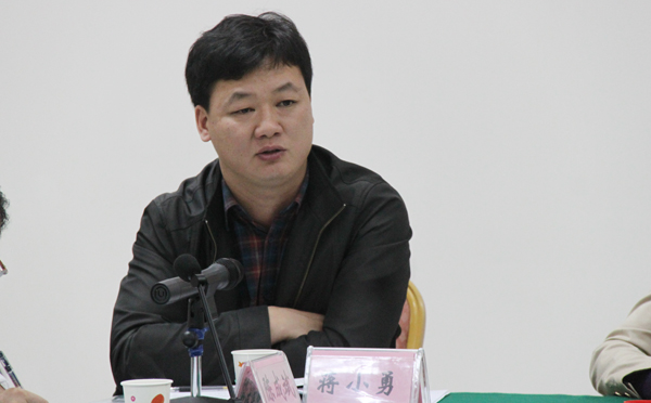 自治区党委政研室经济处处长蒋小勇在座谈会上发言