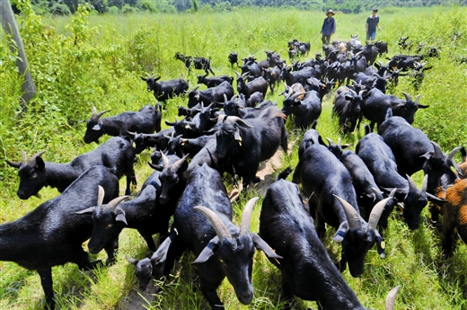 上思县通过财政补贴,引导群众发展山羊、肉牛等食草动物养殖。图为南屏瑶族乡英明村汪厘屯养羊示范户在放养山羊。