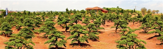 在大力发展用材林种苗的同时,绿化花卉种苗业异军突起。图为广西台湾花卉产业园种植的罗汉松。雷超铭/摄