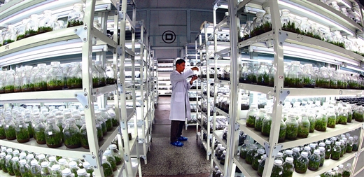 广西主要造林树种建成了组培快繁体系。图为黄冕林场铁皮石斛培育基地组培室。 何国祥/摄