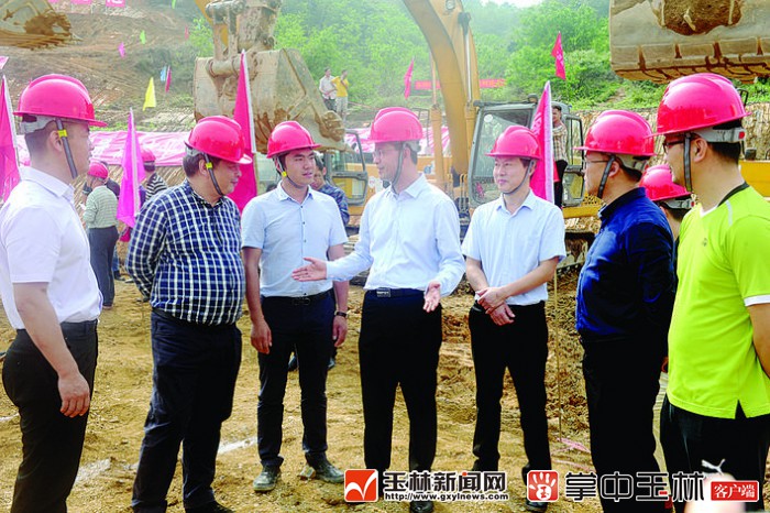 玉林市相关部门领导干部来到工地,现场帮助施工方解决问题。(本报记者 林声远 摄)