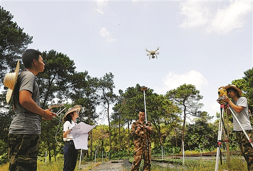 测绘地理信息事业健康发展,保障作用更加彰显。图为广西遥感信息测绘院技术人员利用无人机开展第三次国土调查。 唐广生/摄