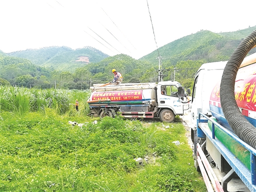 玉林市博白县通过第三方粪污利用合作社收集粪肥喷施牧草。