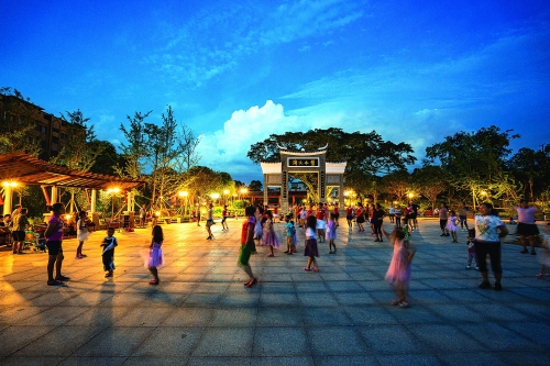 晚间,居民在新建的义江公园纳凉。(图片由五通镇人民政府提供)