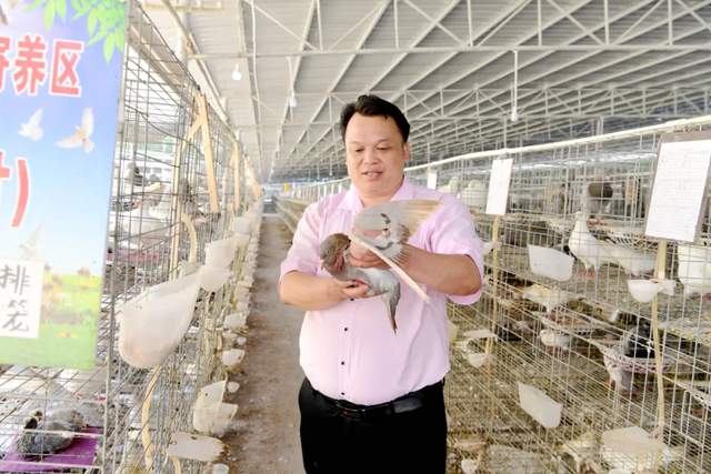 大新县下雷镇志兴村支书黄华东启动皇鸽养殖基地建设,带动群众依靠皇鸽养殖产业脱贫致富。本报记者 李鸿熙 摄