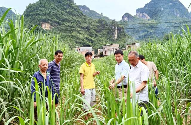 2020年6月9日,科技特派员王维赞(右二)到龙州民建村指导甘蔗生产。