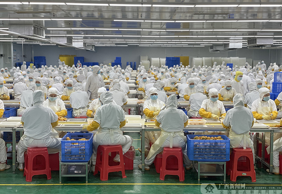 百色市积极推进芒果全产业链建设,加快推动芒果产业转型升级。图为当地的芒果加工厂。记者 宋瑶 摄