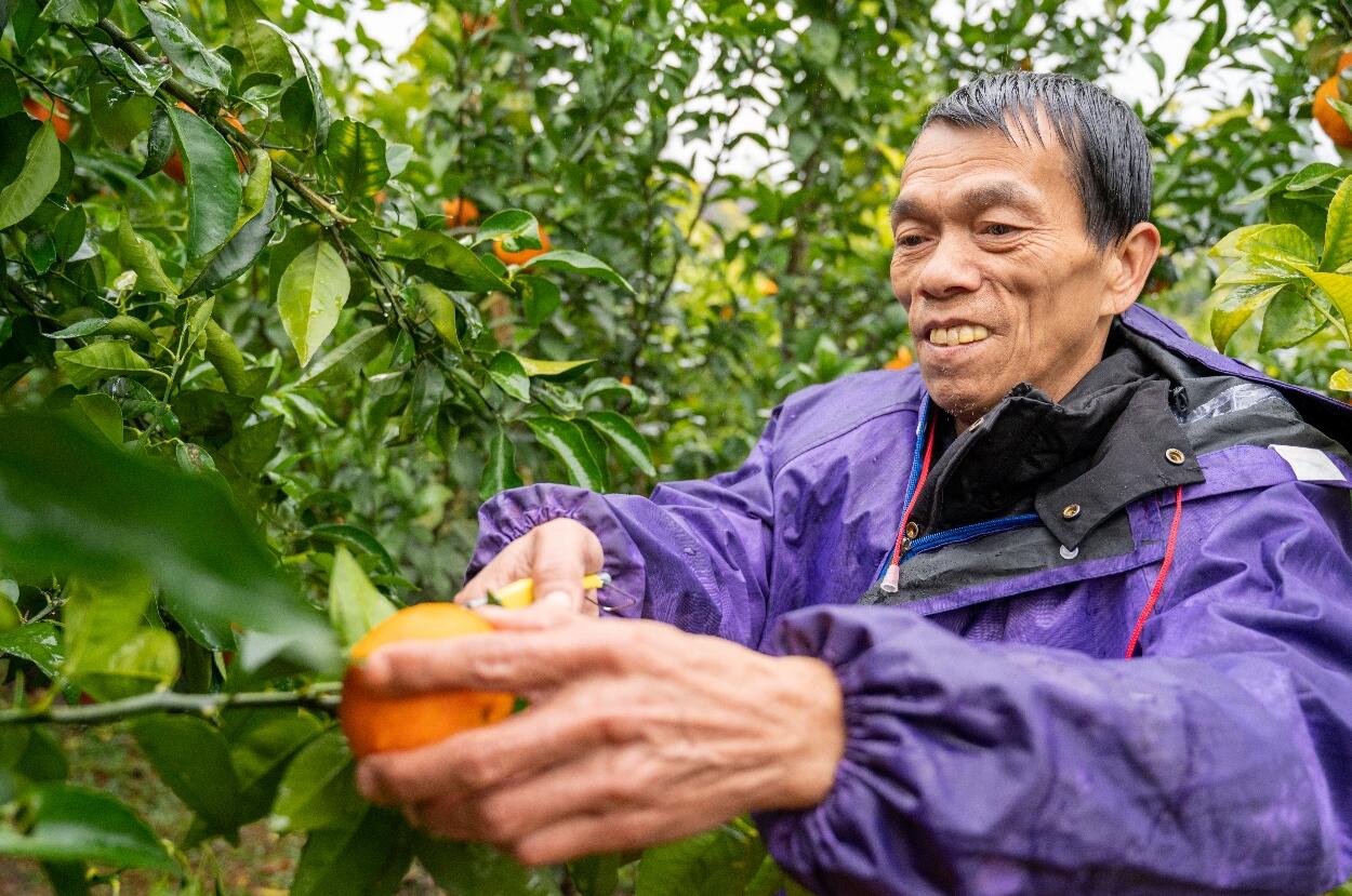 广西环江毛南族自治县川山镇下久村村民韦继木在采摘沃柑。人民网广西频道 严立政 摄