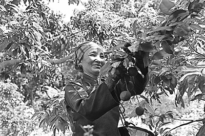 广西北流市北流镇六行村村民采摘鸡嘴荔