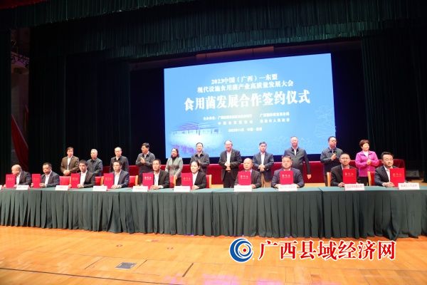 会上,中国食用菌协会授予贵港市“食用菌工厂化发展创新基地”荣誉称号,并举行食用菌发展合作签约仪式。华绿—越南越星销售战略合作、中国香港鸿鳌—东兰贵隆农副产品供应合作、中国食用菌协会—广西农业技术推广站业务合作等一批项目成功签约,签约总投资额达27亿元。
