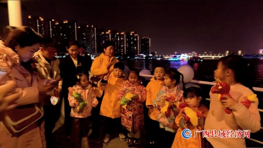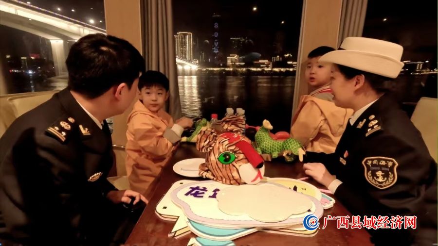 1月10日晚7点30分,10位着装统一、戴着萌萌虎头帽的第一批“小东北虎”来到了柳州东堤旅游码头,乘坐柳州“夜游船”游览百里柳江,感受南方水乡的独特魅力。在引导“小东北虎”们有序登船后,海事执法人员首先对“小东北虎”们的到来表示欢迎,简单给“小东北虎”们还有船上的乘客讲解了海事职能以及安全、文明乘船的相关注意事项,在互动中很快激起了小朋友们的好奇心和求知欲,接二连三地提出问题,执法人员都一一解答,现场气氛热烈,大家还一起跳起了欢快的舞蹈。在航经相关景点时,执法人员也热情的为“小东北虎”们进行介绍。全程保障“小东北虎”们乘船安全的同时,为他们提供力所能及的帮助。
