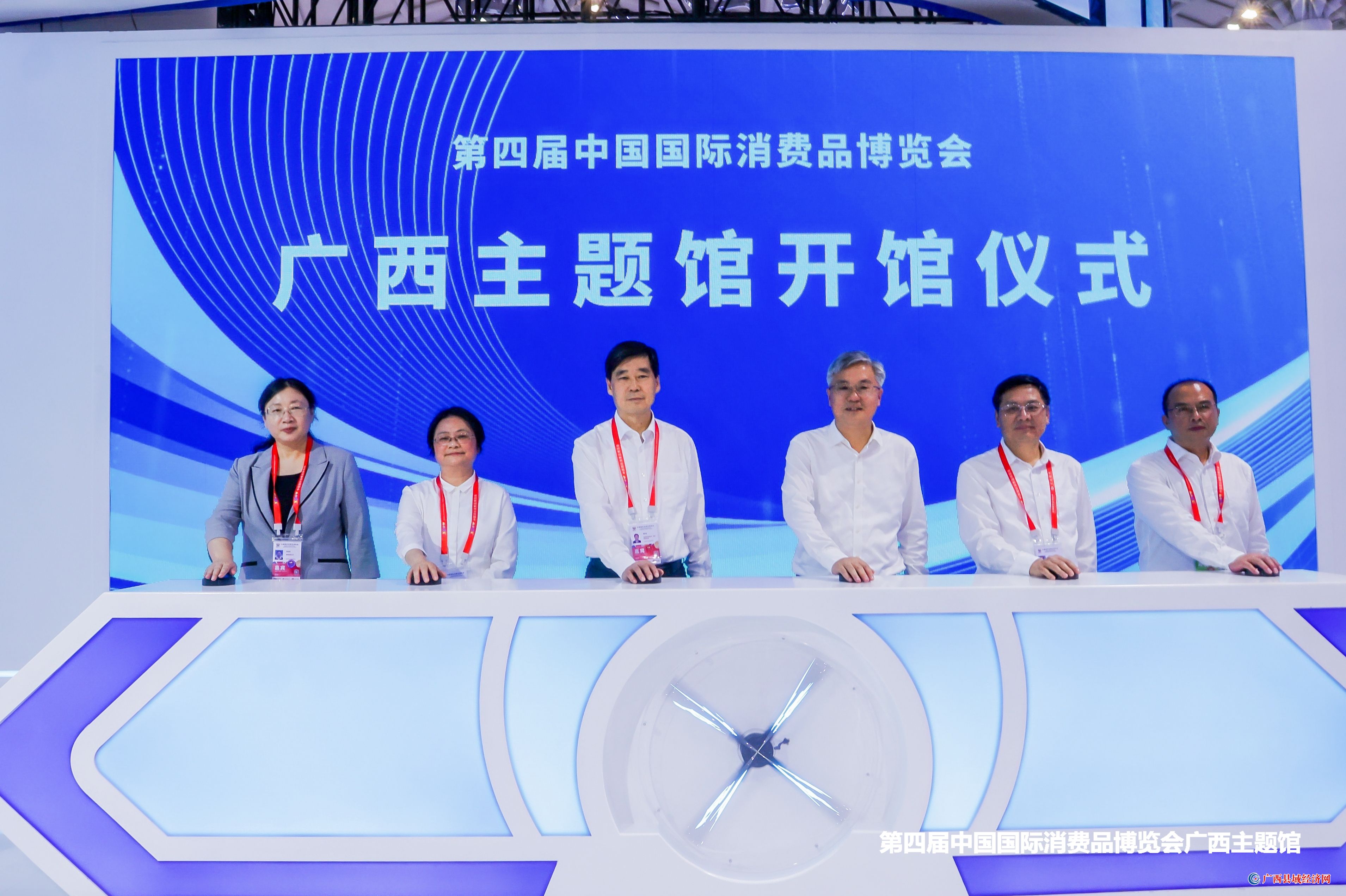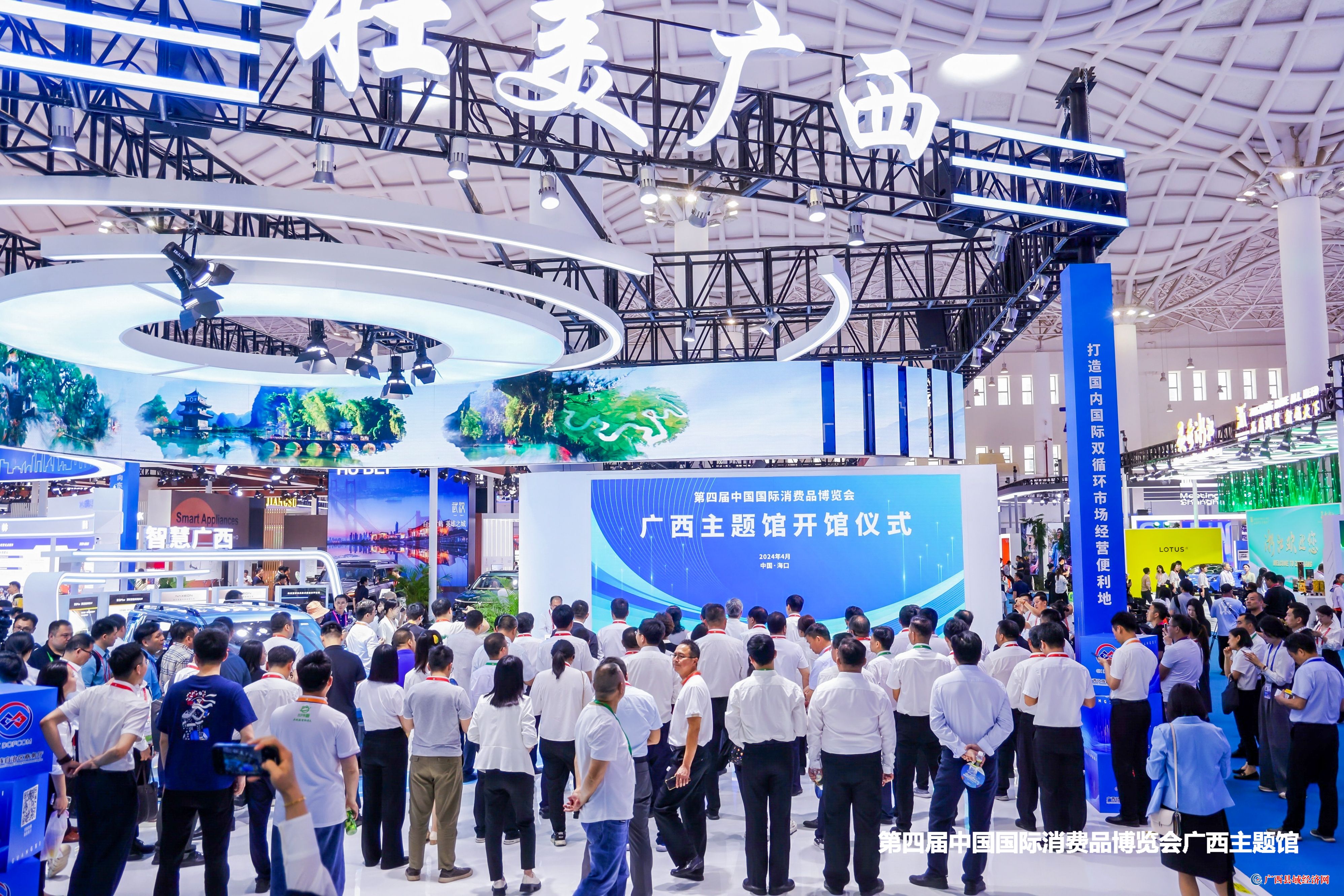 4月的琼岛,春意盎然,椰风阵阵。4月13日下午,伴随着双循环启动装置被徐徐点亮,位于海南国际会展中心7号馆的第四届中国国际消费品博览会广西主题馆正式开馆。