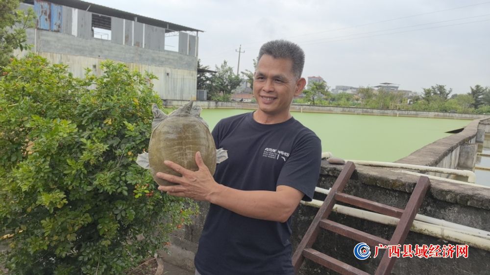 5月8日,采风团在桂平市金田镇臻园龟鳖家庭农场看到,60亩排列整齐的生态水池里,培育有黄沙鳖、珍珠鳖、角鳖,种鳖5000只左右,一年可培育鳖苗20万只,年产值可达200万元。