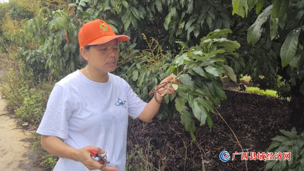 “近段时间,我们主要进行疏花,趁着下雨天施肥,天晴后花谢结果,对长势不好的枝条进行修剪。这样可以让果实提质增产,预计今年基地的龙眼总产量达800万斤。”平南县颖绿龙眼种植专业合作社社长骆小敏说。