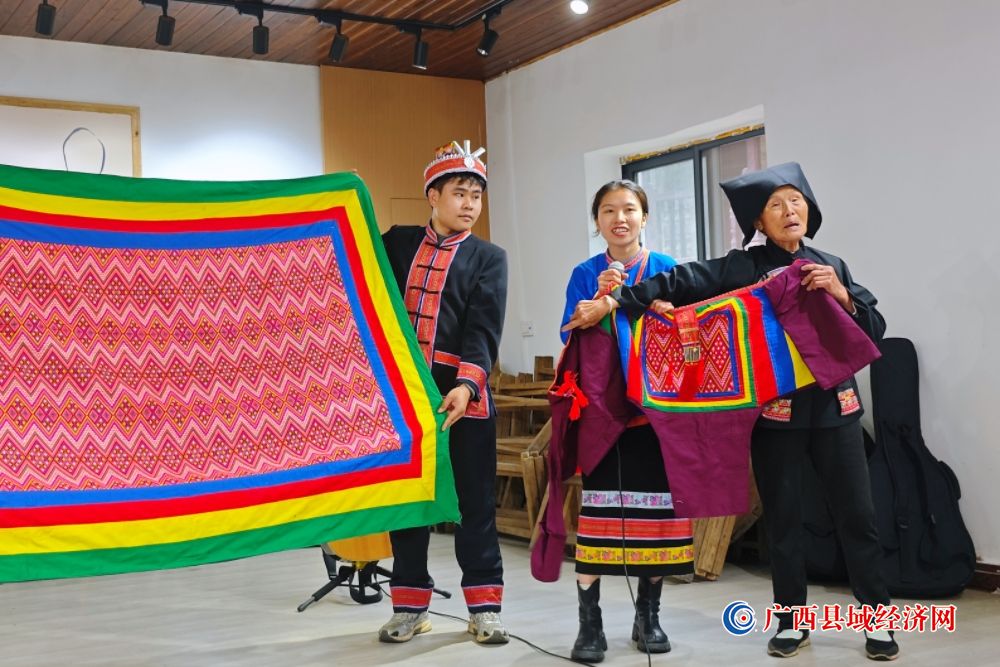金秀县六段村老手艺人在向游客展示刺绣作品。王扬 摄