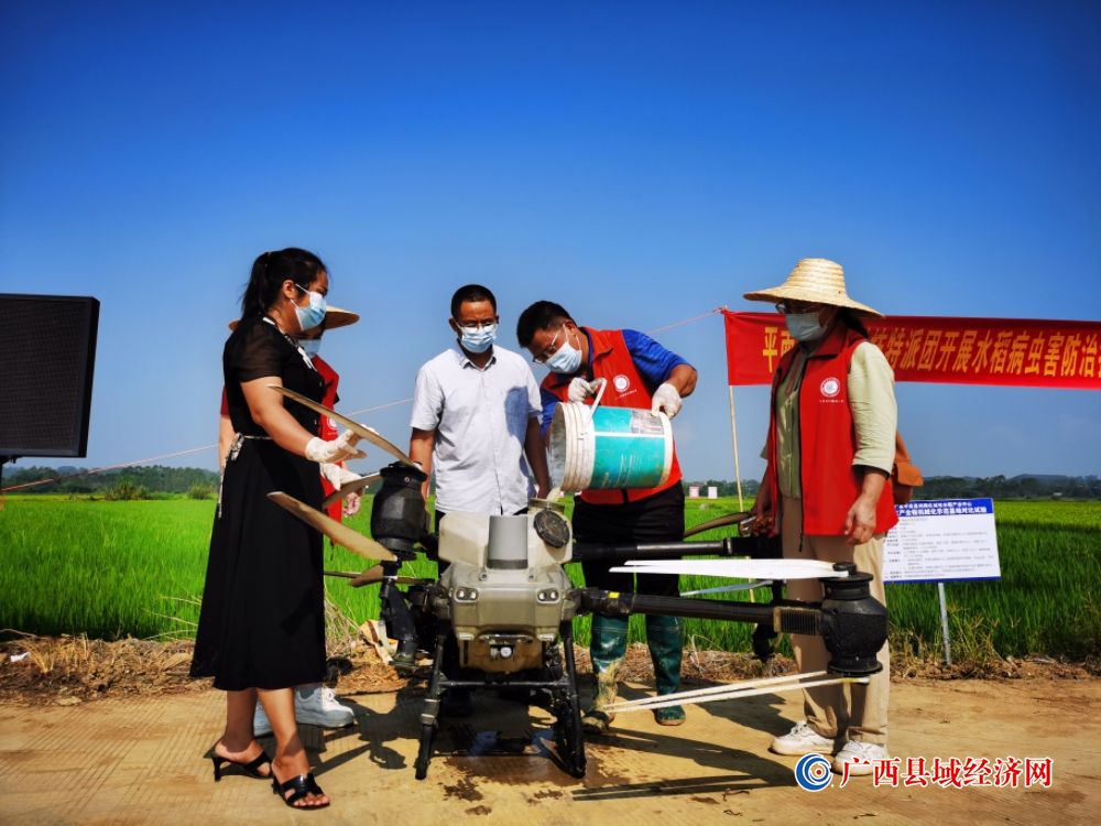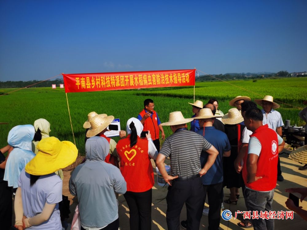 贵港市平南县“一县一团”乡村科技特派员开展水稻病虫害防治技术指导活动现场。林益群 摄