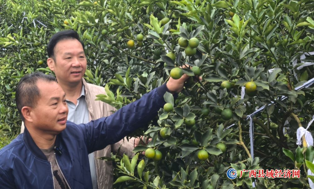 脆蜜金桔基地负责人查看果实长势。庞春妮 摄