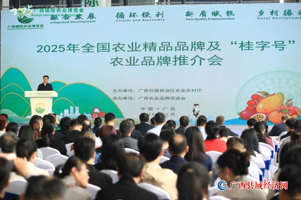 在2025年广西国际农业博览会期间,由广西壮族自治区农业农村厅主办的全国农业精品品牌及“桂字号”农业品牌推介会于11月6日上午在南宁国际会展中心举行。