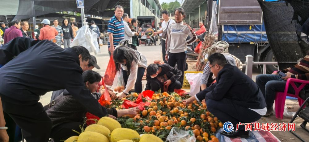 蔬果区更是摆满了琳琅满目的本地食材,成为市民采购的“心头好”。本地白萝卜、茴香菜、卷筒青、凉薯等应季蔬菜仅售1元/斤,脆嫩的本地莴笋2元/斤,鲜香的水芹菜、粉糯的那楼淮山、甜椒均为3元/斤,荔浦芋4元/斤,价格亲民又新鲜;水果摊上,砂糖橘被码成一座座小山,3.5元/斤、10元5斤的特惠价吸引顾客纷纷装袋,饱满多汁的武鸣沃柑售价2—2.5元/斤,酸甜可口的口感备受青睐。摊主们表示,圩日当天蔬果销量比平日翻了一番,不少周边乡镇的居民也专程驱车前来采购,“大家都是一大袋一大袋买,既为冬至备货,也顺便囤点年货”。