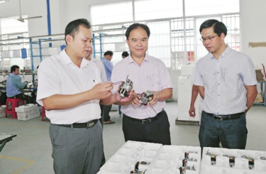北流市委书记莫汉成(中)到德承电机公司调研。