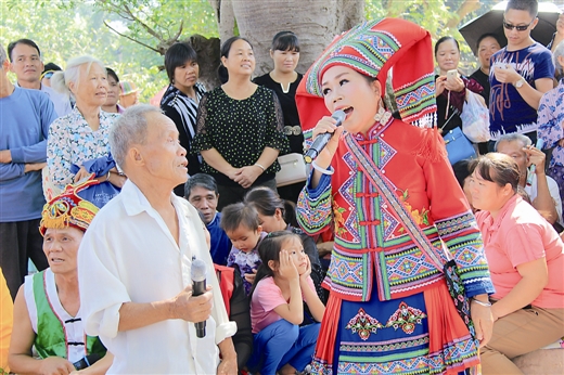 被称“广西山歌王”的武宣黄茆镇的郭秀莲在葵花节现场再战“柳州老鬼”。